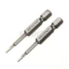 A pair of 1.5mm magnetic hex screw driver bit. Made in Germany. Total length: 50mm Bit length: 23mm Shank: 1/4 inch