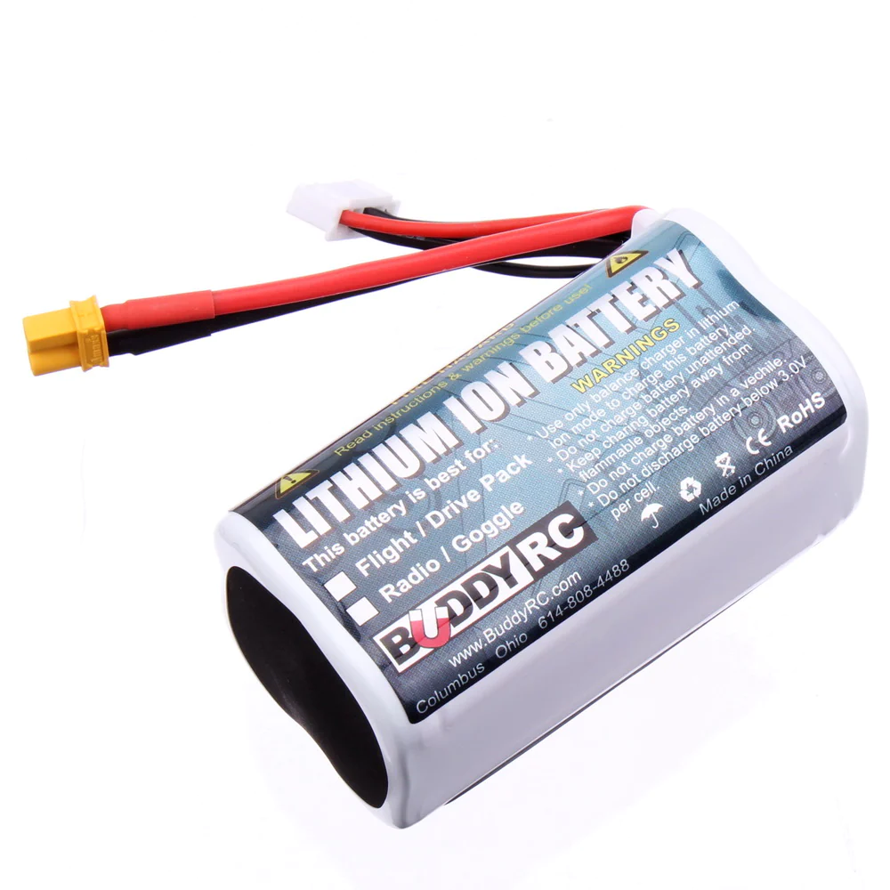Buddy RC 2S2P 7.2V 5000mAh 10C 25A discharge lithium ion battery pack with XT30 connector, can be used for TX, goggles, flight and drive power.