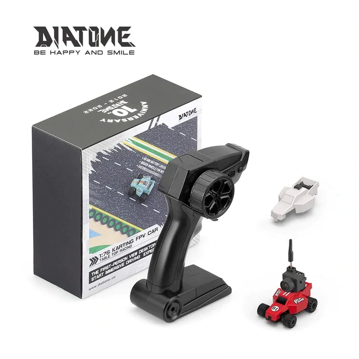 The DIATONE 1:76 Q33 karting RTR car is designed for off-road driving with its high chassis, excellent trafficability, and suitability for almost all kinds of roads. It features a new Q2 remote controller that allows for precise proportional steering and controllable braking function. The car also boasts a long battery life of up to 60 minutes, thanks to its 3.7v 110mAh battery.
