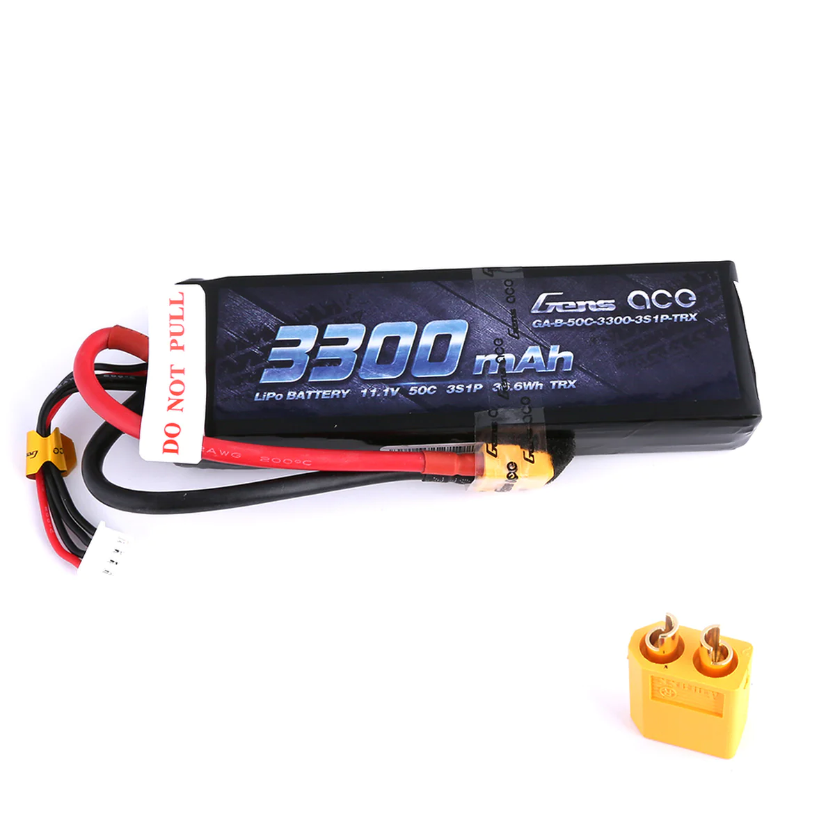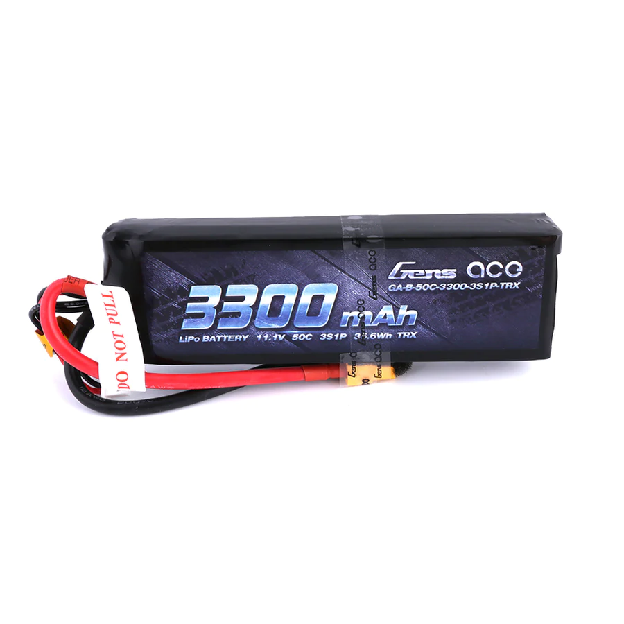 The Gens Ace 3300mAh 50C 11.1V LiPo battery is the perfect choice for powering your RC cars. With its ideal weight and size, it delivers the wild power you need to win all the attention on the RC track. The 50C true discharge rate provides ample power for acceleration, ensuring maximum speed.