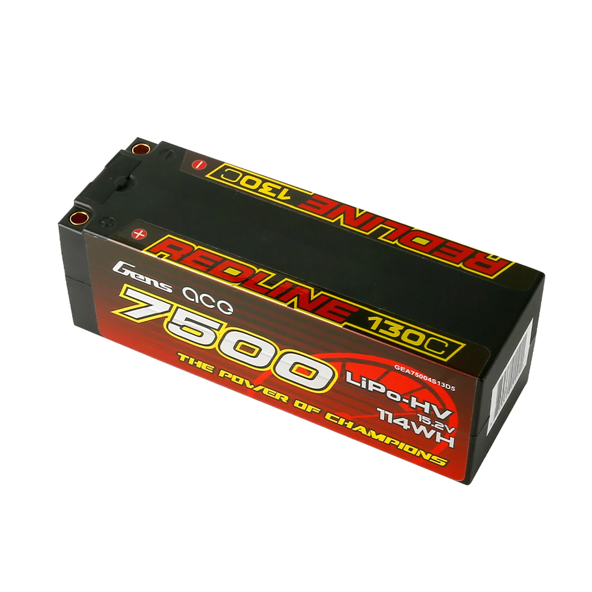 Gens ace 7500mAh 15.2V 130C 4S1P Hardcase Lipo Battery Pack 50# Racing Series is specially made for 1:8 on and off-road racing models. Suitable model: XRAY XB8E/ Losi DBXL-E/ Team Associated RC8/ TLR 8IGHT and so on.