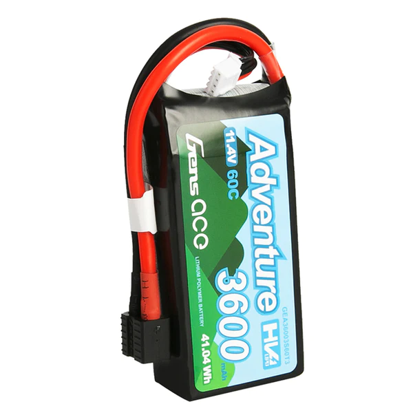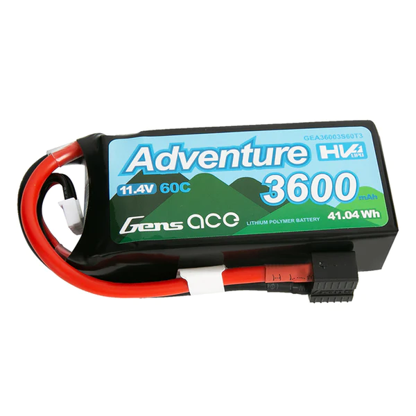 The Gens Ace Adventure 3600mAh 3S 11.4V 60C LiPo Battery Pack comes with the industry standard Deans connector already installed, so there’s no need for any soldering. With a maximum discharge rate of 100C, this 3600mAh 3S LiPo battery provides plenty of power for any application. Gens Ace batteries are known for their long lifespan and consistent durability, delivering full capacity and discharge every time. You can trust Gens Ace to provide the best value batteries in the hobby market today.