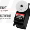 The HS-311 sport servo offers outstanding performance and reliability at an affordable price, making it an excellent choice for novice modelers. Featuring precise resin gears and state-of-the-art SMT circuitry, the HS-311 is a great value in today’s R/C market.