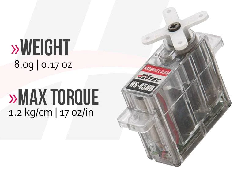 Product Description: The HS-45HB micro servo from Hitec offers excellent durability and affordability, now with added features like ball bearing supported output shaft and Karbonite gears.