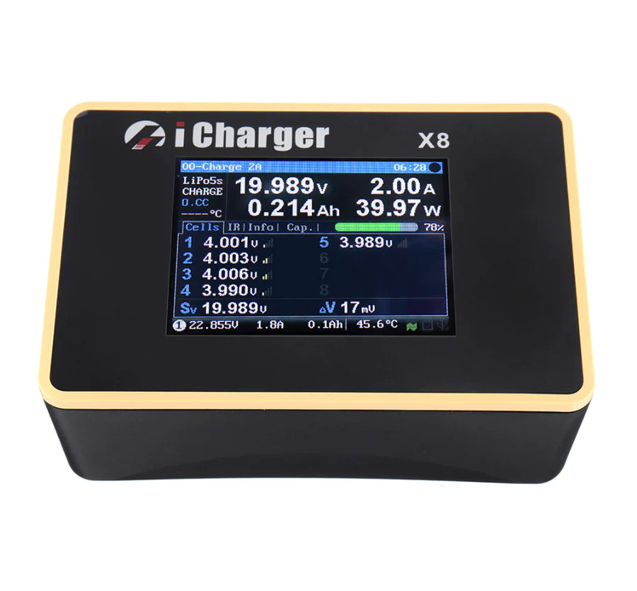 The iCharger X8 DC Battery Charger is a powerful and versatile device that supports a range of battery types and features advanced technology for efficient and safe charging. Here are some of the key features and specifications: