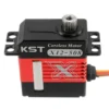 This is the KST X12-508 Micro Servo, a high-performance and high-torque standard digital servo designed for use in 450 Class Helicopter Cyclic applications. It operates at a voltage range of DC 4.8-8.4V and has dimensions of 23x12x27.5mm with a weight of 2g. Its working torque is 4.2kg.cm@6.0V, 5.2kg.cm@7.4V, and 6.2kg.cm@8.4V, while its maximum speed is 0.09sec/60°@6.0V, 0.08sec/60°@7.4V, and 0.07sec/60°@8.4V. The motor type is coreless and it features a high-precision metal gear. The package includes 1 KST X12-508 Micro Servo.