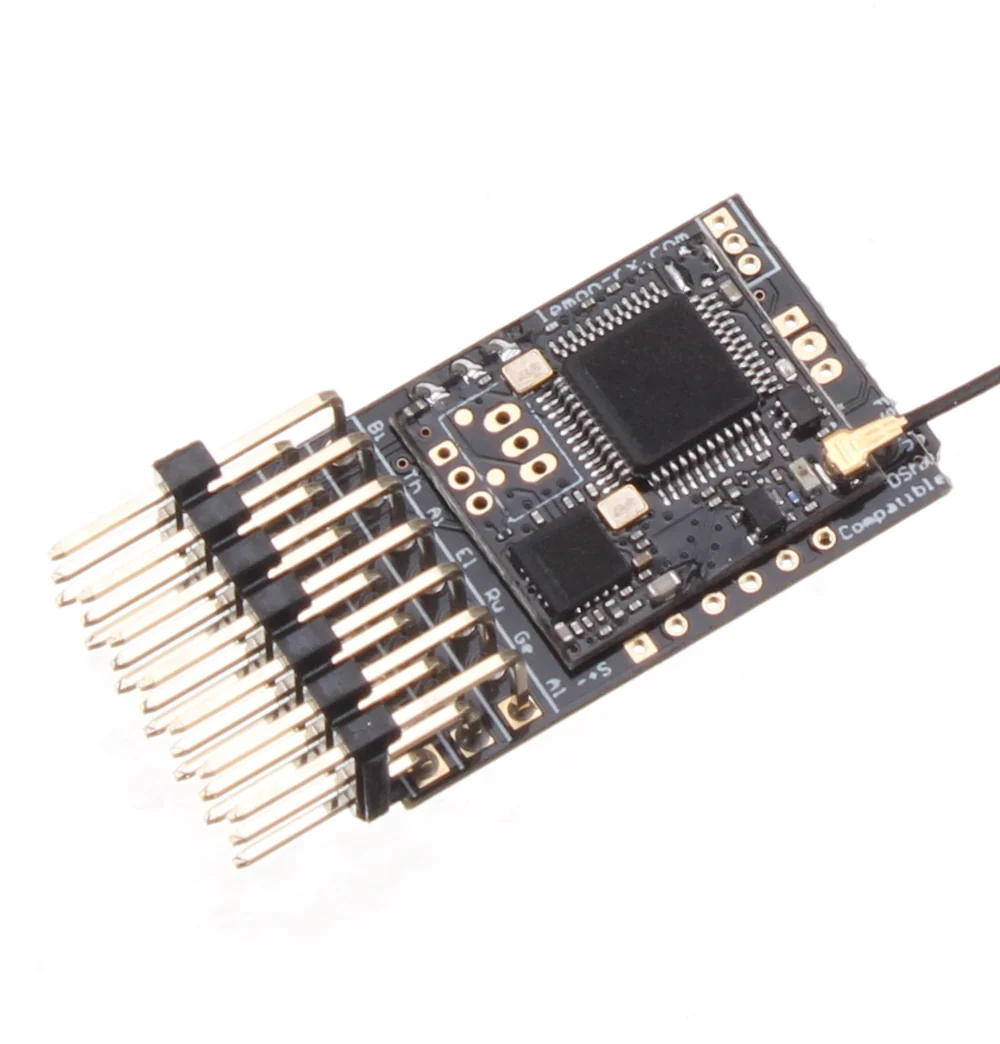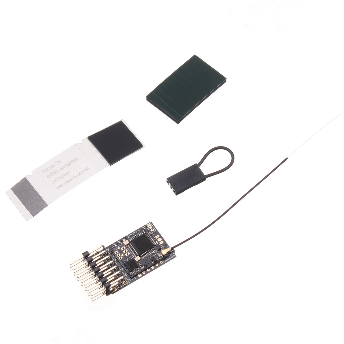 Type: Lemon Rx DSMP 6-Channel Receiver (End-Pin, DSMX/DSM2 compatible) Number of Channels: 6 Modulation: DSMP (DSMX/DSM2 compatible) Band: 2.4 GHz Dimensions: 30 (L) x 18 (W) x 11 (H) mm Weight: 4.43g Voltage Range: 3.45 – 8.4 V