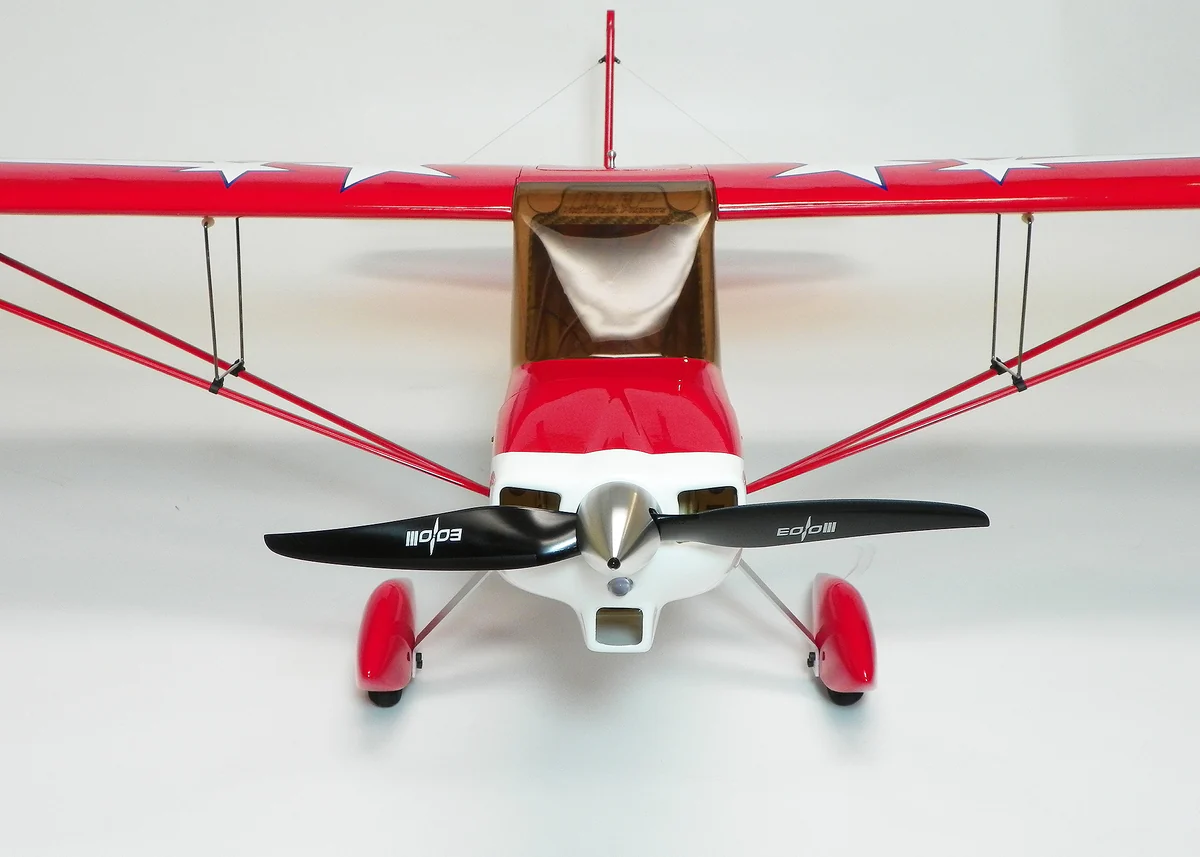 Equipped with aluminum landing gear and soft tires, this plane can take off from grassy surfaces without any trouble. You can take it anywhere and fly it with ease.