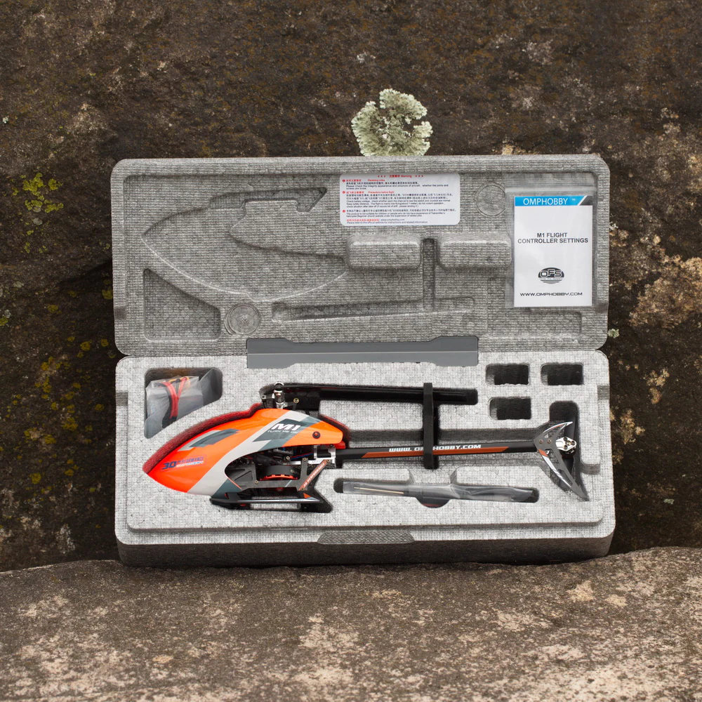 The OMPHobby M1 RC Helicopter RTF is a great micro (150 size) 3D Flybarless RC helicopter. Best for indoor flying during bad weather days. It can be flown outside as well.