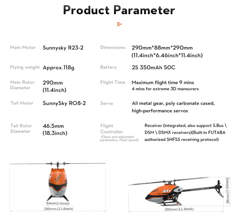 The highly anticipated OMPHobby M1 micro helicopter will be available this fall. This small sized helicopter inherits the great features of the bigger M2 brother, yet much smaller making it ideal for indoor flight in the winter. Product is expected to be shipped around the middle of November, but may encounter delay because of the busy holiday season. Three colors will be available: orange, purple, and yellow.