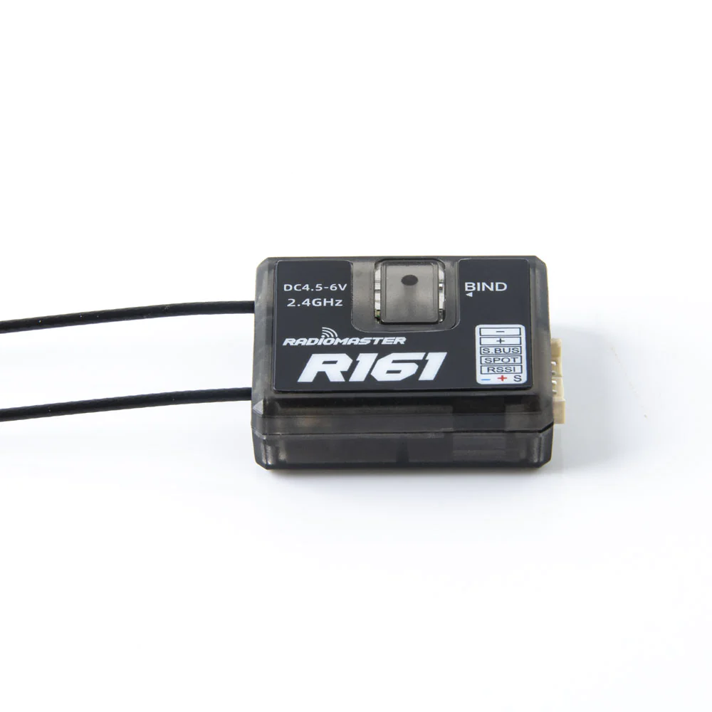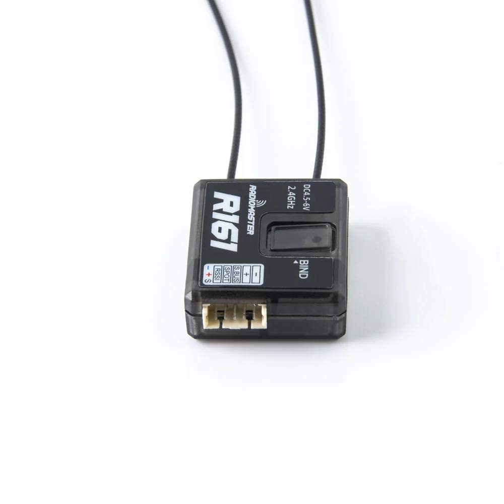 RadioMaster R161 is a 16-channel RC radio receiver that is compatible with Frsky D16 protocol. It supports SBUS and S.port output formats and telemetry features for flight control TELEMETRY & RSSI output. The receiver has a control distance of more than 1km and failsafe protection with CUSTOM (customized for all channels), HOLD (failsafe hold), and NO PULSES (no pulse) modes. The frequency range is 2400-2483.5Mhz, and the power supply range is 4.5-6V. The antenna length is approximately 15cm, and the size is 26218.5mm. The weight of the receiver is 7 grams. For more information.