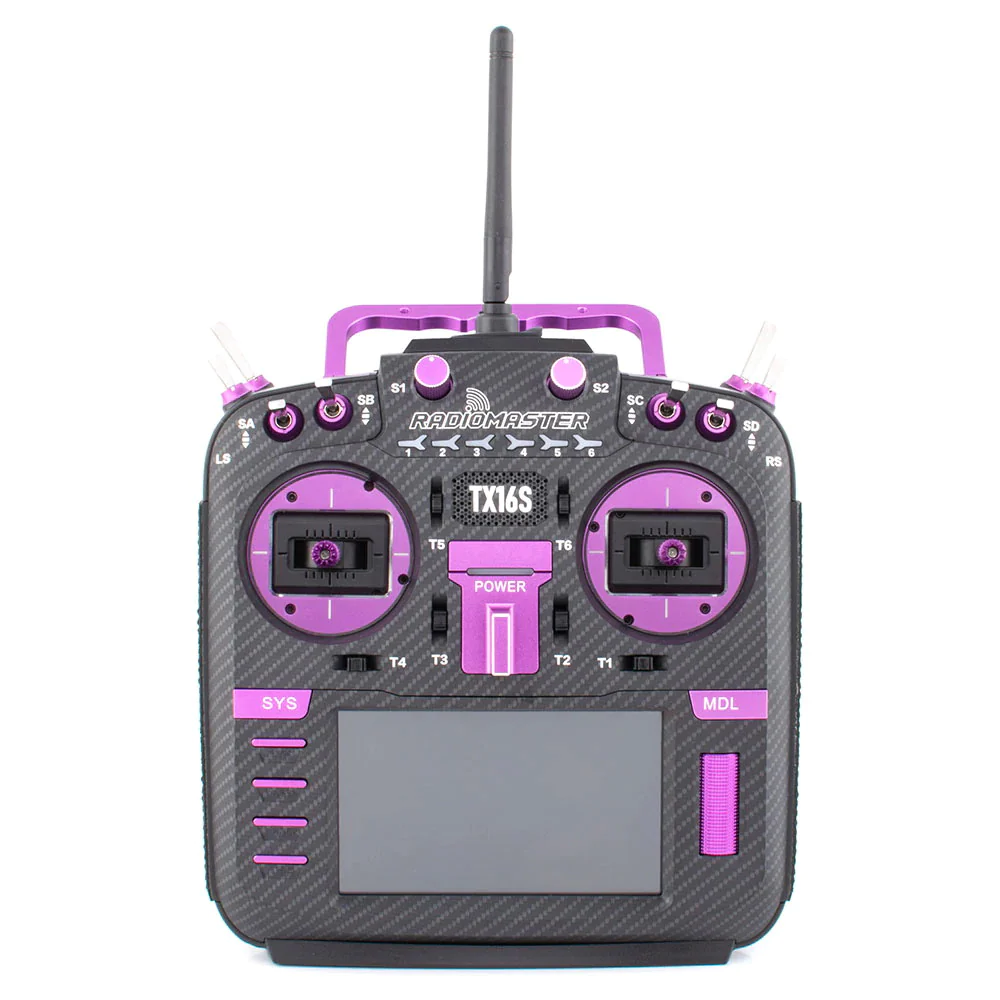 Introducing the RadioMaster TX16S Mark II Max Radio Controller, now available in the Joshua Bardwell Edition. This high-performance JB radio features a carbon fiber faceplate and purple CNC parts, as well as a V4.0 hall gimbal, making it an affordable option for everyone.