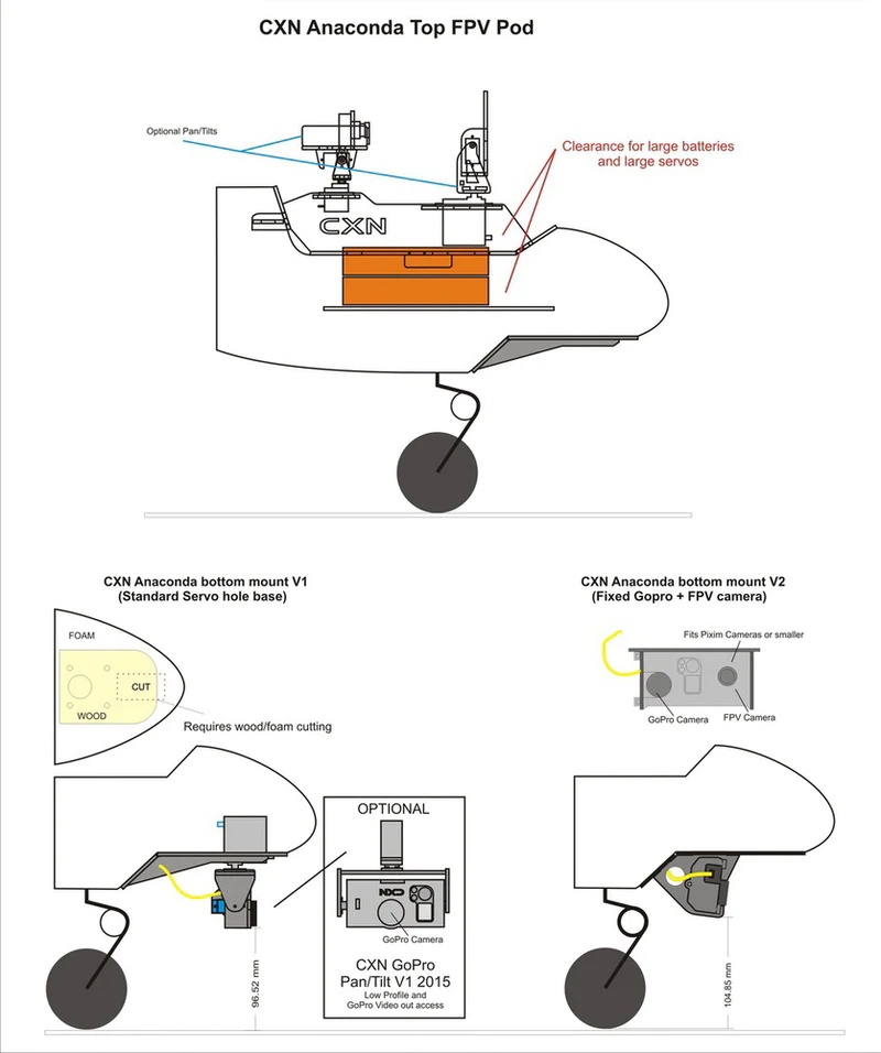 The Anaconda features a twin boom, inverted-V tail pusher design, with FPV flying and amateur aerial photography being its main purpose. It has been described as a “pilot’s air frame”, meaning that while it maintains excellent stall characteristics, it does not self correct while in a turn. When paired with the Vector OSD and stabilizer, this is the ultimate combination.