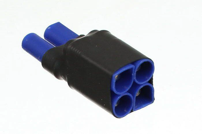 Use this adapter to connect two batteries with EC5 connectors in series to get higher voltage, but the same capacity. For example, if two 6S 22.2V 5000mAh batteries connected in series with this adapter, it will be a 12S, 44.4V, 5000mAh battery pack. Net weight: ~25g, 0.9oz.