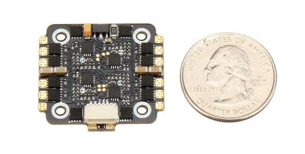 Spedix IS20 2-4S 20A 4 in 1 BLHeli_S ESC with DShot supported, 20x20mm mounting M2 holes. This small ESC is designed for small 80-130 size brushless quads. The ESC alone weighs only 5 grams. Do not be deceived by its compact size. It can output 20A on each channel to power those high performance motors of small racing quads.