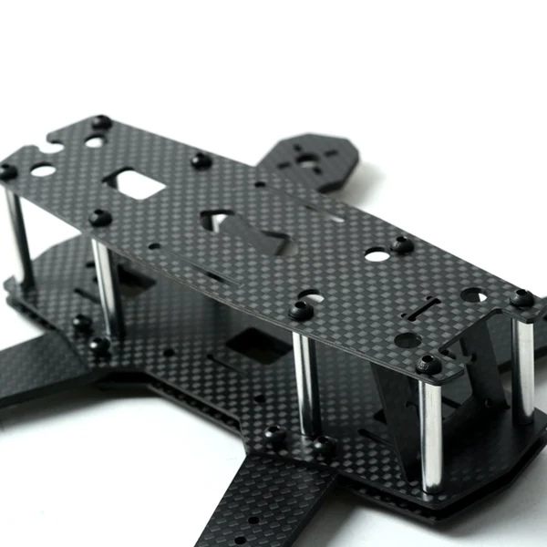 This frame is made of pure carbon fiber plate, with a weight of approximate 98 grams. The package comes with all the screws and aluminum columns to assemble the frame as shown in the above photos. Recommended setup: 1806 motors 16A Mini ESCs 1000-1500mAh 3S LiPo battery 4 inch propeller